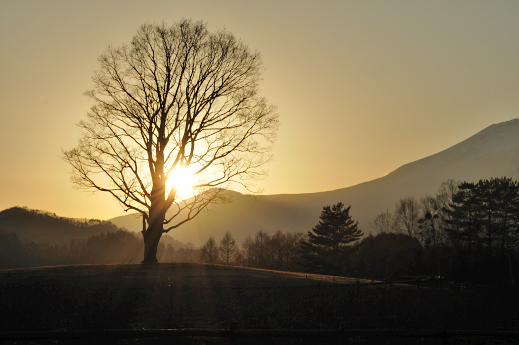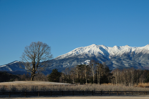 開田高原 木曽馬の里 御岳山とコブシの木今朝はマイナス10度まで冷え込んだそうです。寒かった(>_