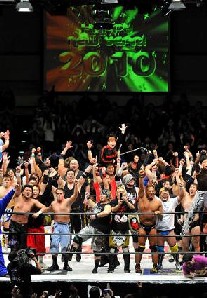 明けましておめでとうございますということで、年越しの話題から・・・大日本プロレス、DDTプロレスリング、KAIENTAI-DOJOの3団体共催による「天下三分の計 大晦日年越しスペシャル」が31日から新年にかけて東京・後楽園ホールで開催され超満員となる2010人を動員したそうですこの日は大みそかの19時45分からダークマッチがスタートし全試合が終了したのは年明け後の午前1時過ぎ実に5時間以上に及ぶロングバトルとなったそうで、年越しの瞬間を迎えたのは史上空前となる108人参加の年越しランブル中45秒ごとに1人ずつ入場するため、23時22分に試合がスタートし48人目の大黒坊弁慶が入場した時点で一旦試合をストップ選手たちがリングに集合して全員でカウントダウンを行った後即座に試合再開となったそうです千葉や横浜限定のコアなマスクマンも多数登場する中、特別ゲストとしてTAJIRIも参加して、TAKAみちのくと元WWE同士の連係を見せるなどして会場を沸かせたが、高木三四ロビンセブンのアイスラッガー攻撃で無念の途中退場に最後は葛西純がこの日デビューの謎のマスクマンザ・グレートキララをパールハーバースプラッシュで沈めお年玉プレゼントとして「3団体が総力を挙げて葛西純をプッシュする権」を獲得したんだとか全試合終了後は3団体の選手が協力して作り上げた2010個のドミノ倒しを見事成功させ、感動のフィナーレへ4年連続年越しプロレス参加の高木三四郎とTAKAみちのくは「いろんな面白いものがある中でプロレス好きな人が集まってくれて、バカ騒ぎが出来る大会。ぜひ今後も続けたい」と今後もカウントダウンプロレスの継続を誓い合ったそうですよ今年も色々やってくれそうですねぇ 大日本プロレス Blood & Death History DVD【送料無料選択可!】大日本プロレス 地獄の死闘(デスマッチ) 伊東竜二スペシャル Vol.2 / プロレス(大日本)【送料無料選択可!】大日本プロレス 地獄の死闘(デスマッチ) Vol.4 / プロレス(大日本)【送料無料選択可!】DDTプロレス MAX BUMP 7 -2007.5.4 in 後楽園ホール- / プロレス(DDT)【送料無料選択可!】DDTプロレス Day dream believer 6 -2006.10.22 in 後楽園ホール- / プロレス(その他【ポイント10倍】クレカで全国送料無料!!KAIENTAI DOJO 3 SUPER BESTKAIENTAI DOJO 【プラチナ謝恩200912】KAIENTAI DOJO