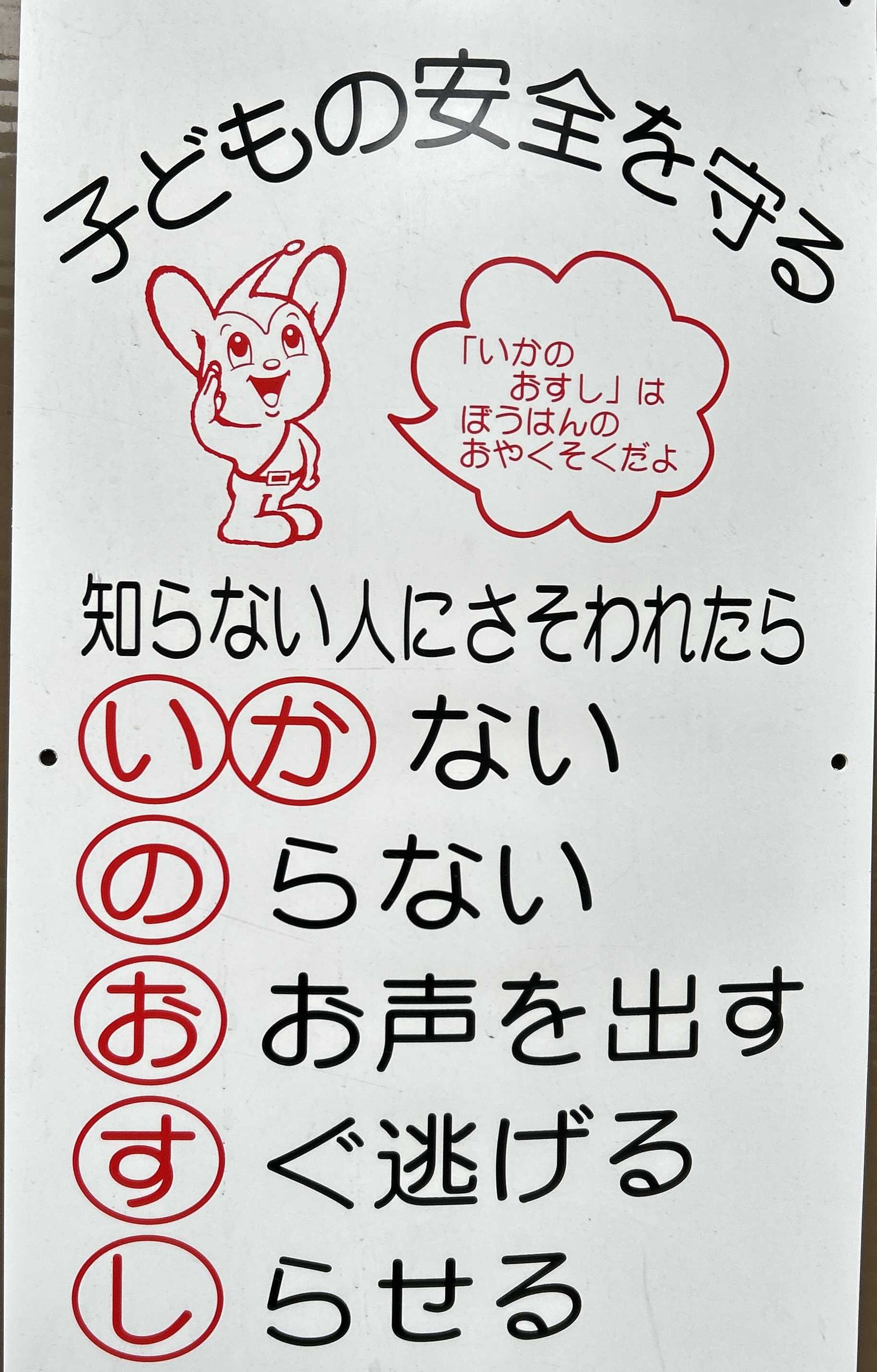 これ、できたのいつから?知らない人にさそわれたらそんなことこやっておそわらないと行けない時代なのね。幼稚園入る前かな?マンションの隣のおばちゃんから息子がパ〇ンコで取ってきたからとぬいぐるみをくれたんだけど知らない人からもの貰っらダメだと受け取らなかったって、後から 母経由で貰ったの思い出した🤣