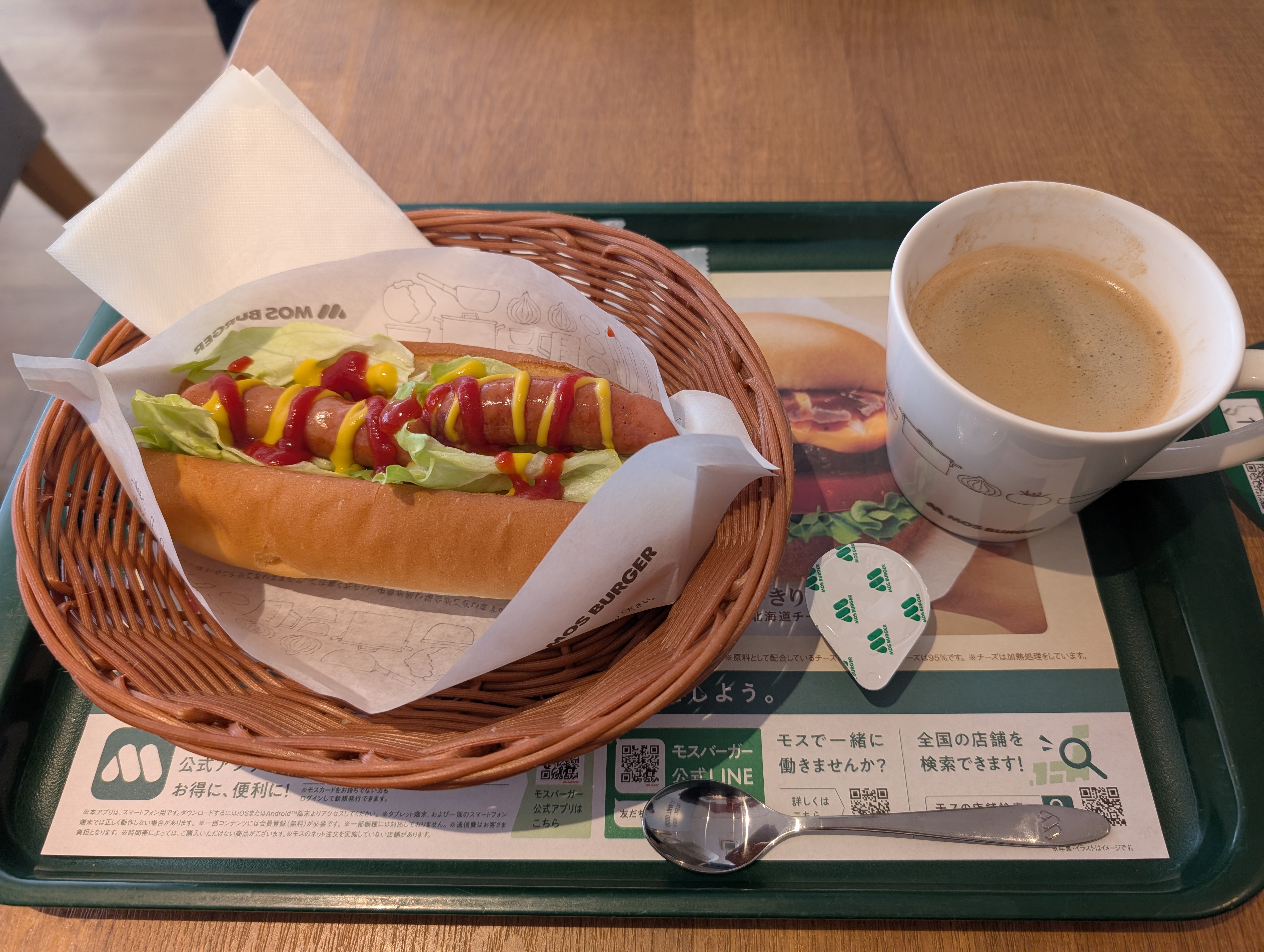 モスバーガーでモーニングしました。朝🌄10時30分までです。平日限定じゃないのが嬉しい!!写真のセットは税込440円です。コーヒーは2杯めが120円になります。1枚目のレシートを店員さんに見せればOK。お店には、新聞📰が設置してあり、自由に閲覧できます。こういうお店、いいですね~!!500円のジェフグルメカードを金券ショップで事前に470円で購入していたため、実質410円+dポイントが4ポイント貯まりました。最近、モスバーガーはインターネットサービスがなくなり、「d-WiFi」利用を勧めています。そのため、d-WiFiを利用させてもらっています!!便利ですよ〜!!モスバーガーは、コンセント設置のお店もあり、充電も可能です。昨日は、雪❄⛄️模様の天候だったから、コインランドリーをまわしながら、モスバーガーでワイワイセットをアプリのクーポンで購入し、店設置の読売新聞🗞️を読んで過ごしました〜。