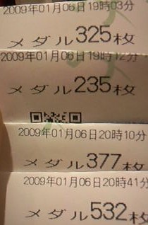 ども!\( ̄。 ̄\) (/ ̄ 。 ̄)/新年明けましておめでとうございますw 旧年中は大変お世話になりましたw本年もよろしくお願いしますw 超久し振りにログインしてみましたらアクセス数が・・・44,444みたいな 死 なんか今年を象徴するような不吉な気配が・・・ 死 そんなこんなで今年も宜しくお願い申し上げますww 特に!!!アバンギャルド連合 宜しくデスw(・∀・)ニヤニヤ♪西からHAL19党首、東から和ちゃんという女性陣を交えた参戦にふくみを残すという感じで(・∀・)ニヤニヤ♪茨城のヒデタGTIさんも参戦か?(・∀・)ニヤニヤ♪ 若旦那は遠いかな?汗年明け1発目ですから名実ともにLove-Love稼働にしたいと思っていますwwそれでは年末の稼働日記逝ってみますww 【2008年12月26日金】待望の9連休を控えて浮かれ気味のダメダメスタッフ達(オレモデスケド 死一応3時頃には掃除終わった順から帰っていいぞ司令がでていましたので会社の先輩たちが特上寿司+お酒を注文してくれてなんちゃってお疲れ会開始 死某会議室を占領してワイワイやってたんだけど某先輩「では毎年恒例の”芸出し大会”を始めます!」とノリノリMC口調 死ちょww恒例ってか、初めてでやったことないし (;´Д`)ノ「それではトップバッターは・・・この人を置いてないでしょう! (・∀・)ニヤニヤ♪」何故皆こっち見てる?死 σ(゜∀゜ )オレ ?死3●歳になって芸出し命令受けた 猛爆 まぁまぁうけたんでものまね→社内の人イジリでしたがw 適当に飲んでたんですよw (゚Д゚ )ハッ!我に帰ったらオサーンばっかで女子全員帰宅 死 ( ゚Д゚)ポカーン うん、仕事は仕事付き合いと割り切るのはよいことだ!(涙オサーン連中ばっかになったので何となくお開き 死2次会の流れかなとも思ったが俺は稼働したかったので何となく巻いてw逃避 (・∀・)ニヤニヤ♪ 会社近くのD店に侵入(・∀・)ニヤニヤ♪ 巨人の島TOPから1箱持ってやめる兄さんを発見! m9(‘・ω・´)シャキーン 即座に抑えて打ち始め!ww310G打ち始めで3K目、スイカ重複で赤七BIG!(・∀・)ニヤニヤ♪しかもフリーズ付きw初BIGからバー揃い2回の快挙 (・∀・)ニヤニヤ♪ よい流れから猛特訓w 強ベルから青七BIG に(・∀・)ニヤニヤ♪ちょww全然特訓終わらん 死まずは一撃1160枚w ( ̄ー ̄)ニヤリッ!ここから特訓抜け→即リプ3連→強チェ→赤七→バー揃いとかの最強コンボで最終的に・・・・※ コイン詰まってレシート2枚になっただけですw 投資: 3K回収:50K (2500枚 等価交換)設定5っぽかったなぁ~(・∀・)ニヤニヤ♪ 終日打てそうな台ですたw【2008年12月27日】この日は夕方から稼働出撃!(・∀・)ニヤニヤ♪久し振りに幹事長に徹してみようかという事と年末設定入っているわけないので天井狙いをメインに立ちまわってみることに!爆1台目、エヴァバケ後550回転 投資8K → 暴走リプ→覚醒リプ→黄→赤七→589枚 2台目、青どんバケ後489回転 投資2K 単独どんBIG→323枚 (・∀・)ニヤニヤ♪投資10Kで912枚獲得!ファンタステック!俺! 3台目!札+高設定挙動のエヴァ約が空いた(・∀・)ニヤニヤ♪絶好調!キタコレwd(・∀・*) 投資・・・18K 爆死 1001ゲーム当たり 死(;´Д`)ノミッション中でミッション追加!プレミアなので許すかな?死赤七ww 子役確率が1/5.5(ベル、スイカ、チェの合算)が良好ので追いまくるも・・615枚でギブ (;´Д`)ノ チェリーって1/10 重複でしたよね?確か?22回連続スカ 死(;´Д`)ノゼンゼンアタラン 死投資:28K換金:32K4K勝ち (・∀・)ニヤニヤ♪ エヴァ約しんどいわ (;´Д`)ノ【2008年12月29日】本年最終稼働!(・∀・)ニヤニヤ♪ 負け王さんの日記を携帯で読んで再度とっても冬ソナが打ちたくなる!w1~4台目まで全然回らず1諭吉 死亡 死(* ̄ノ ̄)/Ωチーン (* ̄- ̄)人 i~ 合掌 5台目2.5K追加の時にやっと2Rランプペカリンちょ(嬉)ああ、やっと当たったわって喜んでたらww あれよあれよと!!17連した (嬉w~~┗─y( ̄◇ ̄)21000発ゲ━━(σ≧∇)σ━━ッツ!! 正確には6連→時短確変4連→時短後133回転目確変4連→時短単発×2少し打ってやめww やはり幹事長としては最後はエヴァ約 死スロ雑誌ぼけーって読んでたらアラシさんが「左下青七ビタが熱い!」って逝ってたのでやってみたww 投資2Kマヤちゃん「大当たりです はあとw」(*´Д`)ノ'‘ァ'‘ァ左青七ビタから右リールチェ 死 (ほぼバケ?)うん、なかなか新しいすべりと出目が見れるから新鮮かもしれんなぁ~~~┗─y( ̄◇ ̄)しかしそこは年末設定 ┐(´ー`)┌ヤレヤレ 投資2Kで黄→バケ→黄・・・党首の逝ってた設定黄色!?爆(;´Д`)ノ設定入っているわけもなく勝ち逃げの380枚換金ww29日結果投資:12.5+2K =14.5K回収:21076発(63K円 3円交換)+380枚(7.5K)56K勝ち (・∀・)ニヤニヤ♪年末稼働で47K+4K+56K=107K 2008年収支に上乗せ成功!!!!!( ̄ー ̄)ニヤリッ!www2008年トータル収支訂正 (・∀・)ニヤニヤ♪455K+107K=562K キタコレwd(・∀・*) 今年の目標は5000枚 Over稼働を目指すスロットと年間収支プラスとしたいと思っているのですが・・・・(・∀・)ニヤニヤ♪慶次はご勘弁の方向で容赦願いたいのですが如何でしょうか?死(;´Д`)ノそれでは今年も仲良くして