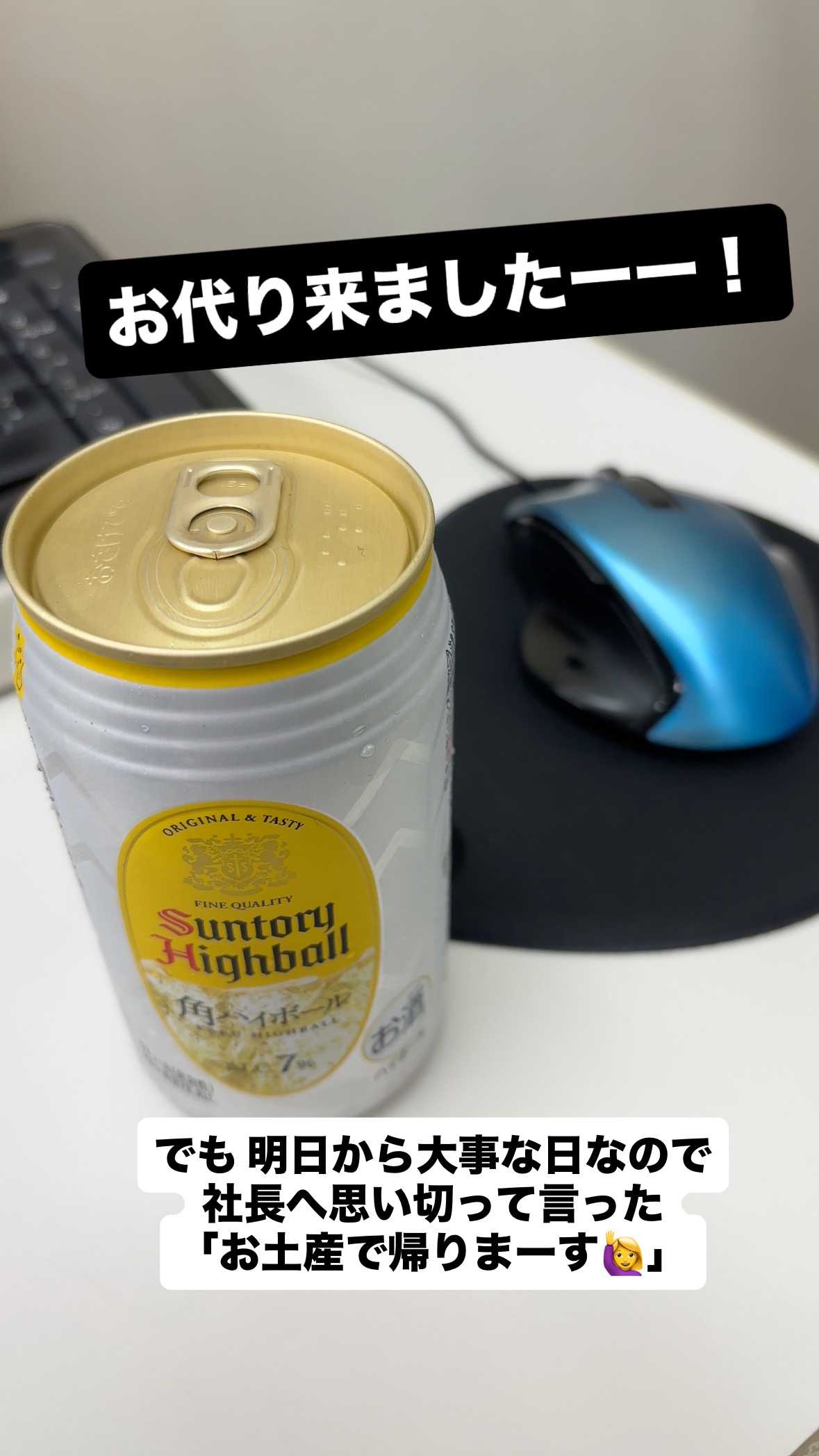 終業時間前にやってきた角ハイボール煩雑な仕事で疲れていたのもあり お土産で定時退社成功良かったー🙌一周忌 納骨 旅行 行ってきます👋