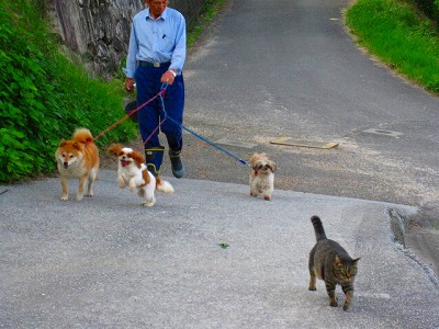 わんたちと一緒に散歩に行っています。