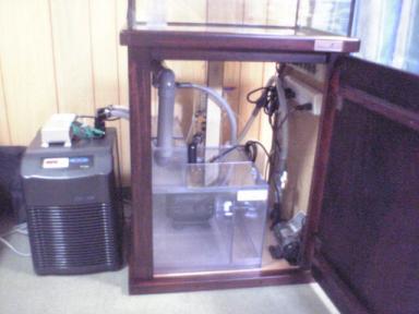 今日は仕事から帰って早速クーラーの取りつけ作業をしました。これで配管と機器の接続はほぼ完了しました。ヾ(〃^∇^)ノわぁい♪いよいよ水槽に水を入れて、水漏れチェックと灰汁抜きの作業を行う段階まできました。その後はついに立ち上げとなる訳ですが、まだもう一つ作業が残ってる事に今日気づきました。それは浄水器(RO)と水道の接続です。水槽から約3メートルの所に洗面台があるので、ここに接続しようとしたらなんと蛇口が四角いため浄水器との接続ができない事がわかりました。1階の洗面所だと接続可能な事がわかったのですが、やはり後々の事を考えると1階だと不便なので、どうしても2階に接続したいけど、このままだと付けられない・・どこかで水道管を分岐させればいいのかなと思ってはみたのですが、何せ水道管なんていじった事がありません。う~ん・・と考えても答えはでないので、とりあえず水道屋さんに聞いてみる事にしました。ある程度大きい水槽を持っていらっしゃる方はいろいろと苦労してるのかな~と思う今日この頃でした。