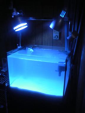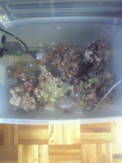 岩が届いたので今日は衣装ケースに海水張ってブクブク中~!明日には岩組みできるかな~♪