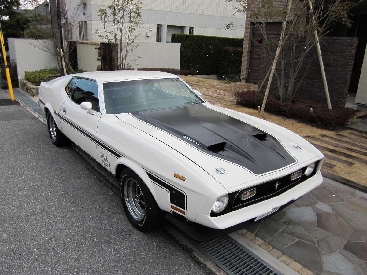 ヤフオクで安く買った1973年式のマッハ1です。前オーナーが相模原のヤンキーだったので室内をシャギー張りにするなどかなり改造してあり、ドアトリム・シートなどのオプションも貧相でしたが、正規輸入車だったので1971年式を念頭にアメリカからリプロパーツを大量に取り寄せて元に戻そうとかなり努力しました。でもベース車を選ばないとお金と時間が掛かるだけで結局行き詰まることを思い知りました。