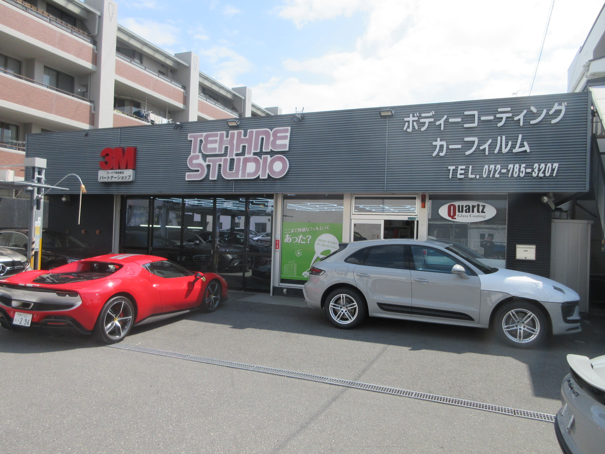 お蔭さまで閲覧数が142,000件を超え、お気に入りに登録いただいているフォローア―の方も3,600名強いらっしゃいます。ともかく、内容の深さ、正確性を旨として投稿に努めますので、よろしくお願いいたします。皆さん、愛車にコーティングをされている方が多いと思います。私も振り返ると、1.油脂系の固形ワックスをDIYで電動ポリッシャーにより既有車に塗りこみ2.ポリマー系のコーティング剤をDIYで電動ポリッシャーにより既有車に塗りこみ3.ポリマー系のコーティングのメンテで、ガソリンスタンドのKeePerに依頼4.新車/中古車購入時にオプションでついでにガラス系コーティングをお任せ依頼という遍歴を重ねてきました。油脂系やポリマー系は耐久性に限界があり、DIYでは専門技術や特殊照明がない中、鉄粉除去漏れ、脱脂不十分、研磨ムラ、塗りムラが起こりやすく、素人対応は止めたほうがよいと実感しました。フェラーリ新車購入時にコーンズにお任せ依頼してきたガラスコーティングやラッピングに特に不満はありませんでしたが、何分各々が20-30万円のため、メンテを考えるともっとコスパの高いコーティングはないかと感じておりました。また、施工店との人的信頼関係を持てないのも気がかりでした。そういう中で、二代目アウディTTクーペを「サンクス宝塚」という外車中古車専門店で買って、お任せガラスコーティングを77,000円で依頼したのですが、これが外装黒色だったこともあってか、りんご飴のような非常に艶々したいい仕上がりで、黄砂や泥砂も水洗いでさっと落ちてメンテが楽でした。施工証明書で調べたところ、「SOFT99のG’zoxというガラスコート」だったので、HPで施工店を調べ、兵庫県で唯一の指定店である伊丹市の「テクネスタジオ」にカレラTを持ち込んで施工をお願いすることにした次第です。 SOFT99 HP:https://www.gzox.com/coating_service/ テクネスタジオ HP:https://k-tsp.com/coat/コーティングの基礎知識として、次の3種類があります。値段に幅があるのは、コーティングに撥水性をどの程度持たせるかの組み合わせによります。中には法外な料金を取る業者もいて、高いからと言って耐久性が正比例するわけでもなく、メンテが必要になってきますので、料金に不安なら数件の施工業者サイトで見積試算されるとよいでしょう。1.ポリマー系コーティング: 3-7万円前後 施工容易、メンテ重ね塗り可能、低耐久性2.ガラス系コーティング: 7-13万円前後 専門技術、被膜硬度3.セラミック系コーティング: 13-25万円前後 専門技術、最高被膜硬度、7-10年の長期耐久性私はカレラTの場合、カーポート駐車で5年保有方針であり、主眼は黄砂、砂傷、雨シミ対策なので、ガラス系で撥水性も霧状までは求めず、通常の水玉状で十分と判断して選定しました。自分だけで決めつけずに、施工店のプロと電話で話して、保管状態や求める艶や耐久性を相談するといいと思います。選んだ施工店の「テクネスタジオ」はSOFT99の兵庫県唯一の指定施工店ということで安心感はありましたが、事前にHPで事業内容を確認し、電話でテクニカルディレクターの今給黎(いまきゅうれい)店長とお話ししました。当地で20年以上、創業地も入れると30年近くコーティング、ラッピング事業をされているとのことで、入庫車は高級外車中心でディーラー取引もあり、預かり車の駐車保管状況やトランスポーター、代車の状態も予想以上でお任せできる信頼感を持ちました。幹線道路尼宝線に面した間口の広い敷地で、十分な駐車スペースが確保され、入出庫も楽でした。フロントリフティングなしでもチンスポイラーは大丈夫です。プロショップ定番の特殊照明の下で、4台同時に並んで作業できるようになっています。マスキングテープも丁寧に貼られています。作業スタッフの方々もきっちり挨拶いただきました。やはり、伺った時の印象がとても大切で、整理整頓ができていない、トイレが汚い、植木が枯れている、社員の愛想が悪いというショップは避けるべきです。仕掛中のガラスコーティングですが、すでに艶がよく出ています。外装色によって見た目の艶感は異なるようです。研磨が完了したフロンノーズ上面と未了の側面では明確な差があります。マットブラック塗装のランボ ウルスにラッピング加工中でした。ラッピングシートはマットクリアではなく、同色のマットブラックでした。折り紙細工のようなエッジのきついウルスの形状に合わせて丁寧な貼り合わせができていると感じました。代車はテクネスタジオのHPでは軽四輪と書いてありましたが、実際はこのプリウスでしっかりメンテもされていて好感を受けました。乗る前に除菌作業をしてくれて、満足でした。3泊4日で十分な乾燥時間を取って引き取りに伺った時の仕上がり状態です。フロントシールドもおまけで撥水加工していただきました。2023年式で登録後1年半のため、まだ艶は残っていましたが、黄砂をかぶって水かけで落とそうとしたところ、余りよく落ち