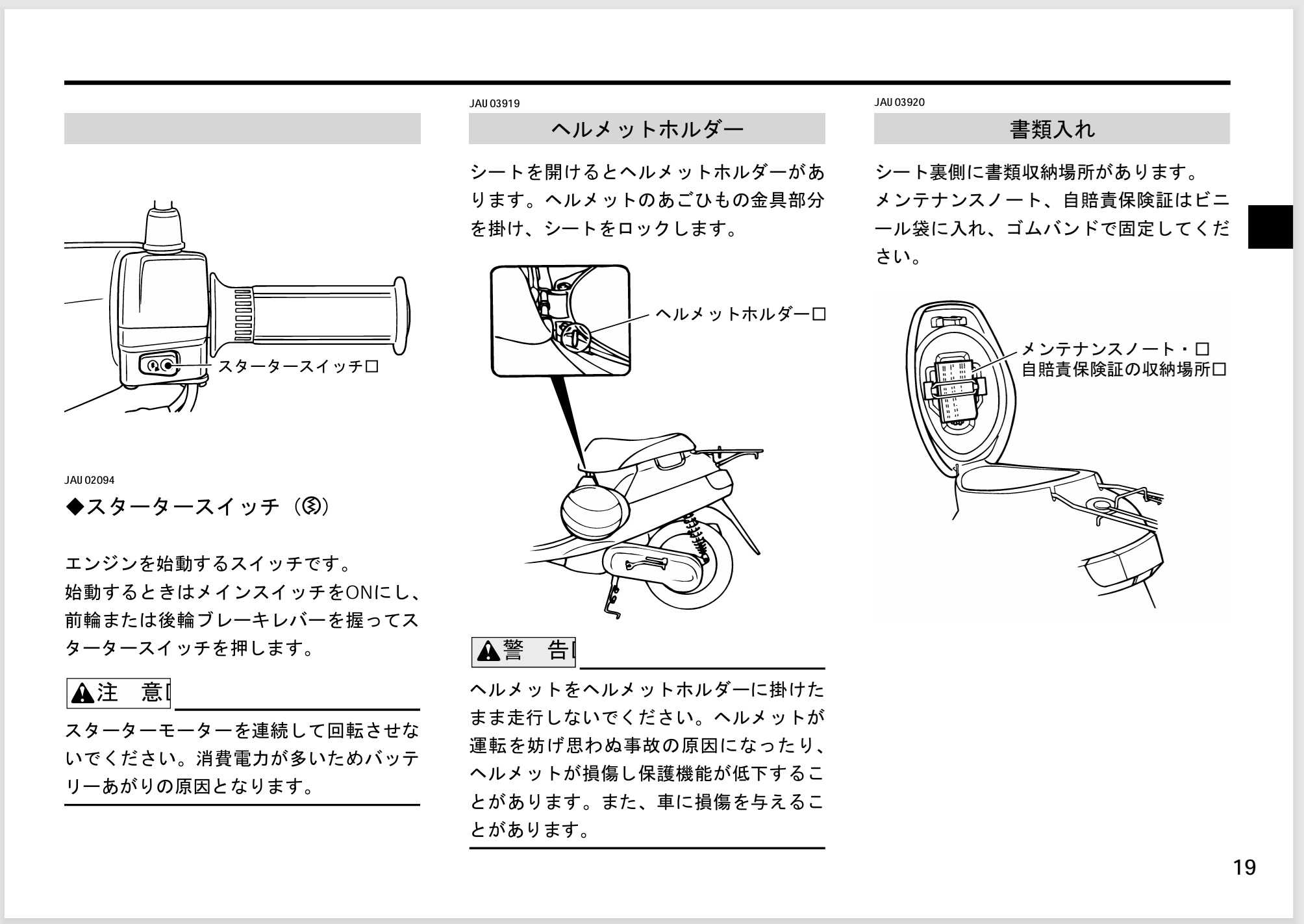 セルスターターが動かない原因を調査中、偶然、アプリオの取扱説明書がヒット。20014JPA.pdfすると、セルモータを回す時はフロントかリアのブレーキをかけた状態でボタンを押せと書いてある。って、ことで実施してみると、かかった!!。(壊れてませんでしたね)ちなみに取扱説明書に従うと、ガソリンメータはEのところで残り1.2Lらしい。残りはウィンカーが点滅しない部分を直せば基本的な機能は復活ですね。
