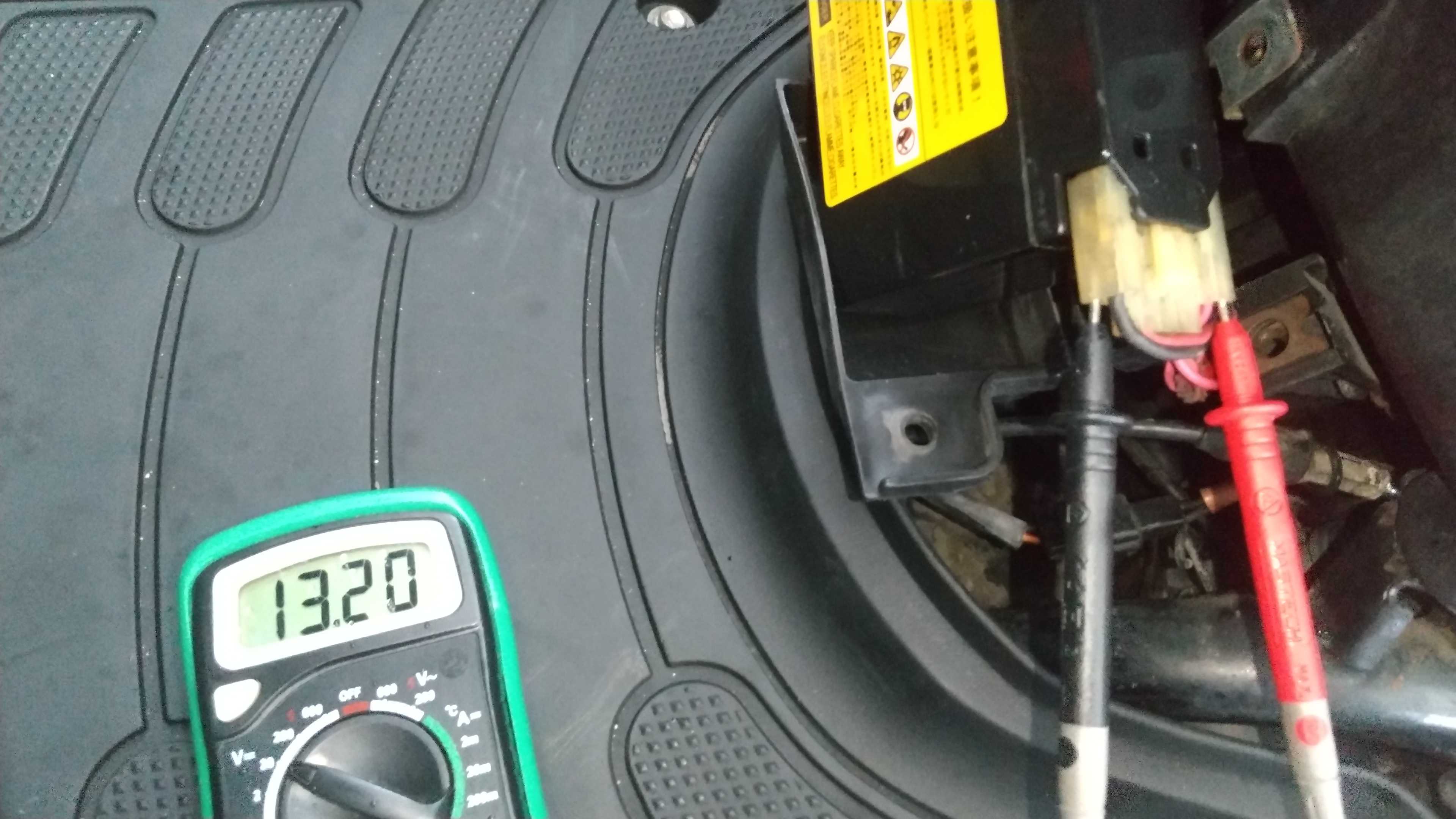 早速、エンジン掛けた状態で電圧を測定してみました。結果、13.2Vなのでレギュレーターは正常動作してますね。ってことで、単に走行距離が短くて、消費電力分充電できてなかっただけのようです。ヘッドライトとウィンカーをLEDに交換したので、少しは電力として負担が下がったはずなので充電ができるようになればいいのですが・・・・・。にしてもバッテリー容量少なすぎますね・・・・・。まぁ、キックでエンジン掛けられるんだけれども・・・・・。