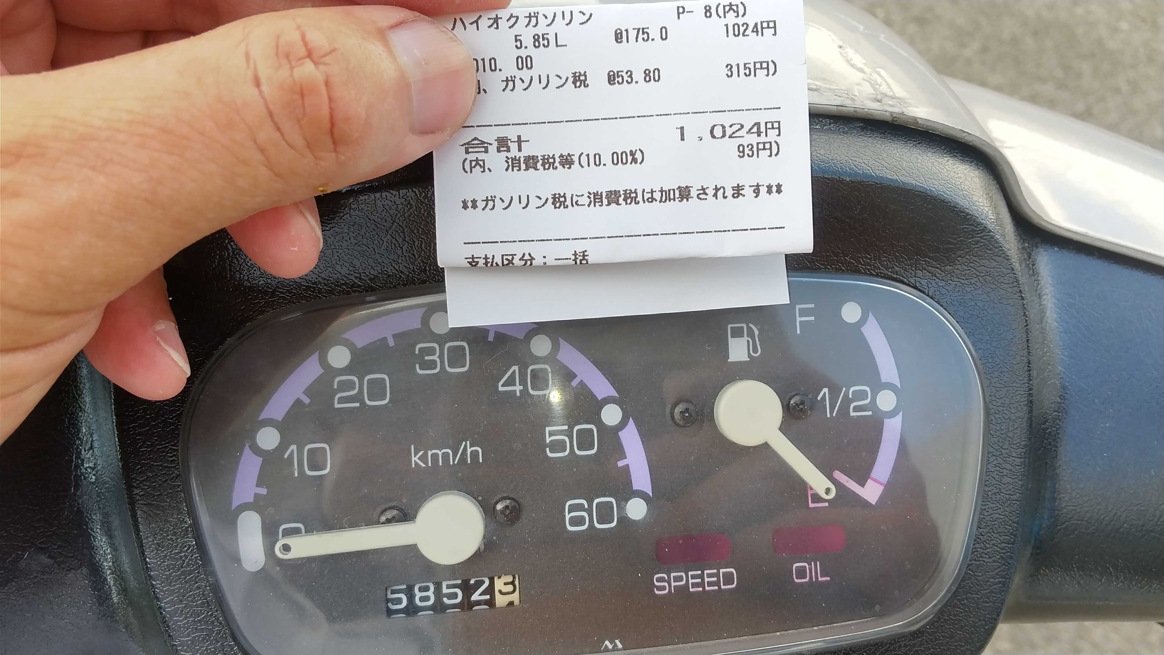 アプリオの燃料残りに関して、Eのところで1.2Lというので安心していたらガス欠になった・・・。ってことで、満タンにして、5.85Lで157km走行なので26.8km/Lですね。たぶん、Eのラインのところが残り1.2Lなんでしょうね・・・。今度からは大人しくE側のラインに来たら給油します。