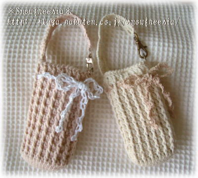 今日も来てくださってありがとうございますっ先月作品応募した編み編みケースです。事前に行った【編み模様】リサーチで人気の高かった引き上げ編みで編んであります。入れ口付近に通したリボンも40番手レース糸でブレードを編んで作製。Frontからは確認できませんが、携帯の飛び出し防止のストラップもセンターについています。繊細なイメージかな??大暴落中です。またゆっくりと上っていけますように・・今回の応募作品はあと二種です。デザイン・編み方・糸・色の決定から製作まで納得の行った作品でした。結果がどう出ても私は満足しています。時間切れで製作できなかった2点が残念っ。Special Thanks!!(順不同) 日記枠=きなこのママさんえんぴつ=やすらぎ庵さんライン・BG=sweet cottonさんありがとう=ぱたぱたアニメ館さんテーブル画像・女の子=かもみーるさん※IE6.0での動作確認済みです。お使いのOSによって枠が崩れて表示されることがあります。m(_ _)m