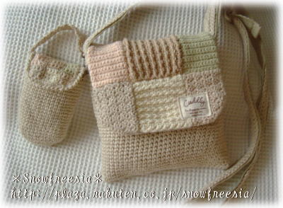 今日も来てくださってありがとうございますっ今回の作品で一番の苦心作かな~?? *・*・*・*・*・*・*・*・*・*・*春の穏やかな日差しの中のお出かけをイメージして作りました。シャキっとしたリネンのボディにオーガニックコットンの優しい色合いのパッチワークを合わせました。編地のキレイな模様編みにしました。ショルダー部分はボディと同じリネンで編んでテープに縫いつけて丈夫に仕立ててあります。フタ裏面・中袋はリネンで縫製してあります。携帯ケースのフタはスナップで閉じます。*・*・*・*・*・*・*・*・*・*・*パッチワークにするニットの糸選び編み模様の決定に一番時間をかけました。ハマナカさんのポームシリーズはコットンなのに、ウールのような柔らかさっ!!この感触はたまらないっ!!((o(>▽<)o)) 土台はリネンの亜麻糸で編んでいます。いつもお手数のところ、ワンクリック応援をありがとうございますお返事にいけそうもなくてごめんなさいです。そんな今日もまたMSの水道工事のため、断水です。(⌒-⌒;) Special Thanks!!(順不同) 日記枠=きなこのママさんえんぴつ=やすらぎ庵さんライン=sweet cottonさんBG= cafe part2さんありがとう=ぱたぱたアニメ館さんテーブル画像・女の子=かもみーるさん※IE6.0での動作確認済みです。お使いのOSによって枠が崩れて表示されることがあります。m(_ _)m