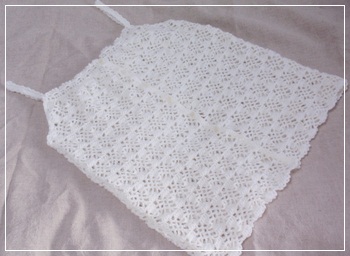 レーシーな模様編みのキャミソールチュニック少しずつ編んでいたものがやっと完成しました。使用糸はダイヤ毛糸のモヘアべーネ(廃盤)さすがダイヤ毛糸さん。軽くてチク感なしです。かぎ針5号使用。テキストの印象より編み目が細かくなった気がするのは使用糸のせいでしょうね。編み図テキストはこちらテキストではコットン糸だったと思います。こんなのも編みかけだったりします。純毛中細使用。方眼編み×ネット編みをひたすら・・・最初の部分だけちょっと花模様の模様編みになってます。大物は仕上げるのに時間がかかるので息抜きにモチーフ編みも始めました。本当は棒針編みがしたいのですが棒針編みを始めると仕上げるまで他に手がつかなくなっちゃう性格なので今はガマンガマンご訪問ありがとうございます。ポチっと応援クリック↓いただけますと嬉しいです。Special Thanks!!free material design by sa-ku-ra*
