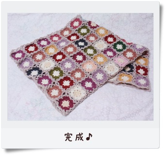 144枚のモチーフを鎖編み・引き抜き・細編みでつないで完成しました。多色でモチーフが多いほど“糸始末”が大変になります。単純に計算しても864箇所プラス縁編みと糸継ぎ分・・できるだけ効率良く作業したかったのでとじ針に通して2~3箇所刺す・糸をカットを2列ずつまとめてしました。裏はポコッ表完成しました~。全体に暖色系を多く使いました。残りのハンパ糸も使ってるのでちょっと変な色合わせの箇所もあります。柔らかくてほんわか温かいです。今度は少ないカラーで統一感のあるものを編みたいです。かぎ針が続いたので今は棒針編みがしたいですね。輪編みでやさしい編み方デザインですが編みこみデザインと松編みデザインのスカートがカワイイです。【送料無料】輪あみのかんたんニット価格:1,260円(税込、送料別)昨日は自治会の子供クリスマス会でした。今年は何年ぶりかで練習がお休みの娘ちゃんも参加しました。私もお手伝いに行ってきました。ご訪問ありがとうございます。ポチっと応援クリック↓いただけますと嬉しいです。Special Thanks!!free material design by sa-ku-ra*