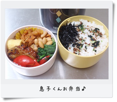 お弁当画像をズラ~っと・・まとめてアップしちゃいます。今までは一個のランチジャーを交代で使いまわしていたのですが今年は二人ともお弁当の日が多くてランチジャー2号目ちゃんの登場です。娘ちゃんは練習や試合会場で食事するのでご飯はおにぎり一個分×2をご飯ジャーに入れてます。冬休みなんですが息子くんは講習・娘ちゃんは練習で連日出かけています。今日は練習時間がお昼を渡るので娘ちゃんのお弁当作りです。明日は講習会の時間の都合でプラス息子くんで二人分です。雪が降ったのでまずは除雪をしなくちゃ処分特価!! メリノミックス ダルマ秋冬毛糸価格:222円(税込、送料別)ご訪問ありがとうございます。ポチっと応援クリック↓いただけますと嬉しいです。Special Thanks!!free material design by sa-ku-ra*