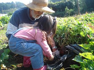 Sheeのおじいちゃんは早々と仕事を引退して、阿蘇で野菜を作ったり、魚釣ったり、家を改造したり・・・と隠居生活を楽しんでおられますおかげでうちは無農薬野菜がたべられるわけです虫つきの今日は、家族でお芋ほりにいきましたよいしょ、よいしょShee,がんばれ~「みて~!Sheeちゃんとったよ~」おいもほりがとっても楽しいみたいで、必要以上に掘ってくれましたそれなのにまだなにか収穫したいSheeは「まだdig dig したい~~~」とおじいちゃんに泣きついて、大根もとらせてもらいました^^;大根は簡単に抜けるので、ちょっと目を離すと次から次に抜こうとするSheeそんなにいっぺんにいらないよぉ お昼は、おじいちゃんが作った囲炉裏で、田楽を食べました。あと、おばあちゃんが家でつくってきた「しし汁」。これは猪のお肉のスープです。それにおじいちゃん特製のハバネロ柚子ごしょうみたいのをほんのすこ~し入れて食べると、とってもおいしかったSheeはまだなりつづけてるプチトマトを窓からとって食べまくっていました^^; この辺りは本当に時間がゆ~っくり流れています。久しぶりにいくと、「こういう生活もありかなあ」なんてちょっと思ってしまいます。