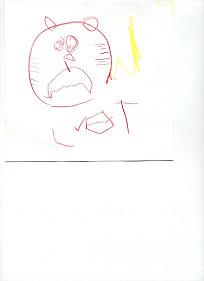 昨日、結局Sheeには、人がみんな違う顔をしてるように、話し方もみんな違う、というようなことをお話してみました。うまく伝わるか不安だったのですが、"Like snowflakes?" という返事が返ってきました。そういえば、2,3日前にみたニコロデオンの「Little Bill」でそんな話題がでていたのでした。万歳!Little Bill!それでなんとなく理解はしてくれたようでした。今日は、お迎えに行ったときに、泣き顔じゃなかったので「今日は楽しく遊べたんだ?」ときくと、「また○○とケンカした!」といったのですが、昨日とはちがって、泣きもしなかったし、なんだか普通に話していたので、私もそれ以上、詳しく聞いたり、余計なこといわなかったのですが、Sheeなりに何かを乗り越えた?と感じられました。私はいつも、なんだか必要以上に心配したり、一人で空回りするようなことがSheeの子育てに関してはあるようで(絵に関してもそうでした)、そのたびに、「考えすぎ、考えすぎ」と自分に言い聞かせるのですが、またもややっちゃったようですね~^^;そうしてそんなたびに、今回パワ子さんや、ほかにも先輩ママたちからいろいろ助言をいただいて、本当にありがたく思っています(人*´∪`)♪тнайк чоц♪(´∪`*人)Sheeが育つと共に、私もなんだか少し成長できるような気がして、子育てって難しいけど、やりがいのある、一大プロジェクトという感じですね。 そんなSheeの最近の絵をいくつか・・・体がまともにかけるようになりました^^Cookie Manです。Sheeはこの歌が大好きなのです"んな~ななな~な~ you can't catch me~"とこにくったらしく歌います^^;ぞうさんカブトムシの♂(左)と♀(右)です。まわりには水と餌もあるそうです。「きのこの畑」だそうです。ちょっと意味不明ですが、アートっぽいので気に入ってます