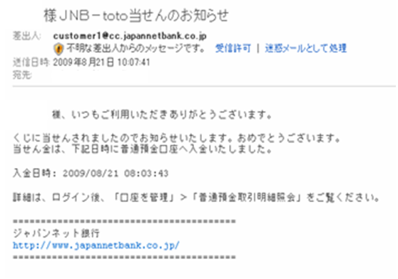 さりげなくtotoBIGに当せんしました。自分が買っていたとこからこういったメールが来ました。なっ、なにー!来たー!!よっしゃー実際、いくら当たったかは秘密です。フッフッフ(^^)v な~んて期待させると危険ですので公表すると、3位の10万程でした。。。(T_T)自分の目標金額では決して無いので、サラッと流してしまいました。★志は高く!! 人生、高みを狙い続けるぜ!!(^^♪