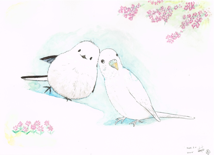 #インコ #シマエナガ #仲良し #お祝い #プレゼント #絵画 #名画 #アート #購入 #名画の休息 #模様替え #インテリア