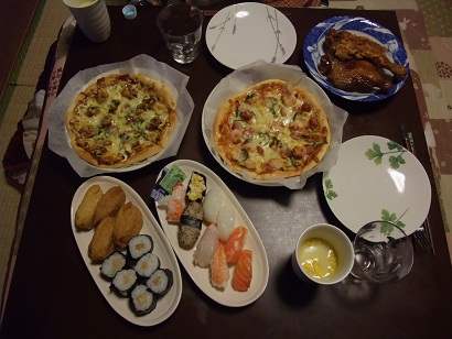 久しぶりの更新です。今日はクリスマスイブ!盛大にパーティーです。ピザにお寿司にチキンにスープ。もう食べ切れません。デザートにケーキも。。。もう無理です。