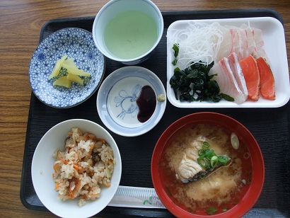 江田島 海辺の新鮮市場にいってきました。お刺身とご飯、味噌がセットで850円。ご飯と味噌汁はお代わり自由です。お刺身は一階で選びます。数種類あって、結構迷います。ごはんは3種類 牡蠣飯、いか飯、ちぬ飯でした。5杯もおかわりしちゃいました。海辺の新鮮市場広島県江田島市江田島町江南1-1-37