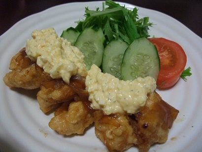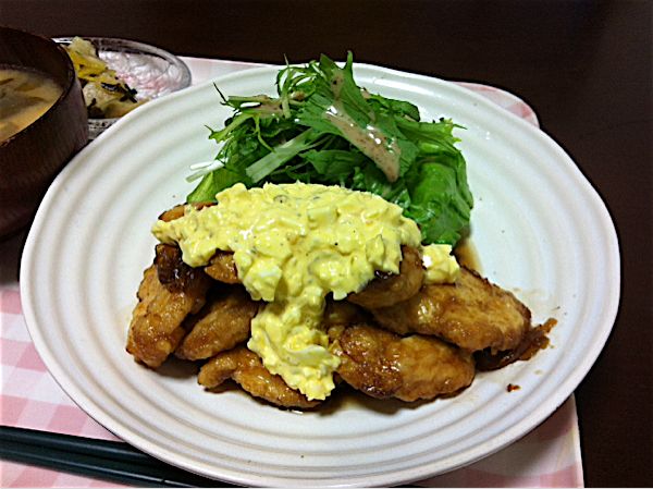 今日のご飯チキン南蛮めちゃうまいです。タルタルソースと相性バッチリ!また食べたい。