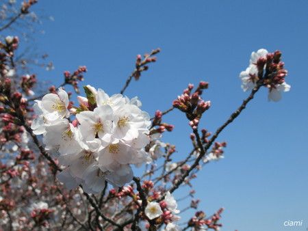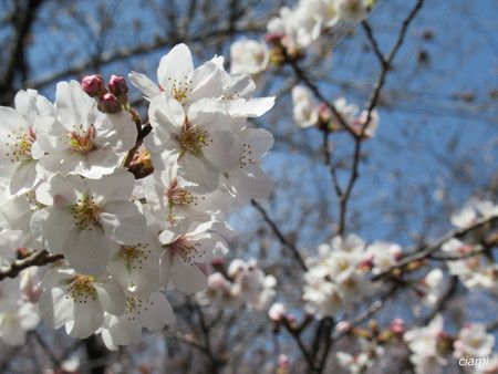 桜に囲まれて、鳥にぎやかにお花見中です。