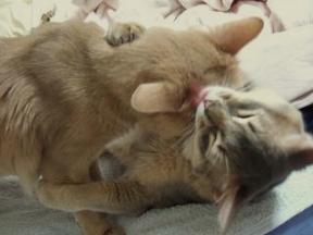 世の中、飼い猫の相性の悪さを憂える方は大変多いのではないかと思いますが我が家では、仲のよさを嘆いております… 贅沢かとも思いますが、『男同士なのに…』『親子なのに…』時折、親子愛で無い愛の形に戸惑ってしまう私… 『気にするにゃよ~』そうか、私の頭が固すぎるのか!?。・:*:・゚★,。・:*:・゚☆。・:*:・゚★,。・:*:・゚☆。・:*:・゚★,。・:*:・゚☆。・:*:・゚★, 突然、楽天ブログの入力方法が変更されていて戸惑っている私ですが、、、折角なので遊んでいます。 色がバラバラで見辛いかと思いますがそのうち慣れます (どっちが!?) と、ここでうちの猫さん以外の猫さん情報~☆パフパフ ソマリの沙羅ちゃんは、只今お問い合わせが入っております♪ご縁があればいいなぁと思いますが、あせりは禁物。猫さん側も里親さま側も、双方納得のゆく養子縁組でありますこと心よりお祈りしております☆ そして1ニャン減って2ニャンズ@大阪引き続き、里親様を探していらっしゃいます。 ももここさんご本人も大変かと思いますがそれでも『見てしまったものは仕方がない。死んでしまいそうだったんだもの』と、人情溢れるご判断で仔猫たちを拾って下さったその粋な心意気。「よっ、江戸っ子だね☆」 …大阪の方ですが。 わたしゃ~、そんなももここさんが大好きさ。ここは江戸っ子の心意気で一肌脱ごうじゃないの。遠州っ子だけど… というわけで、楽天でお買い物するものがある方はふらふら~っとももここさんブログを経由しとくれ! ふ~、慣れないので書きづらかったぁ…(*´▽`*)