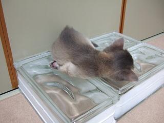 暑いですよね。頭ガンガンしています。昼間はベッドでグッタリして夕方から掃除機をかけたりして何とか過ごしています。そんな私がグッタリしているベッドの下でキューキュー鳴いている子がいるので何事かと思えば大きくなってお気に入りスペースに入れず嘆いているようだった…頭デカイから無理でしょ。とぼとぼ…って諦めたかい?気持ちは分かったから、とりあえずアナタがかきだした物、片付けていい?きらりーん☆はっ(`ロ´;)その目は!!諦めていない目だね。そしてついに顔、斜めになっているけど、入れたね!しかも、姿勢を変えてミッションインポッシブル風。あ~、赤外線カメラで撮ったから画質悪くなっちゃった、ごめん(嘘)絶対狭いところって暑いよね!? 暑いよね!?○*◎*○*◎*○*◎*○*◎*○*◎*○*◎*○*◎*○今日は涼しげなインテリア鏡を貼っとこっ♪ 大きな鏡(左)と小さな鏡(右)そして、丸くなっても 大きな鏡(左)と小さな鏡(右)ふぅ~っε-(´o`;A 暑い日の作業は、単調に限るね。