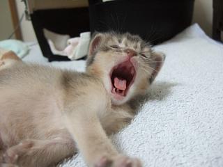 私のパジャマは、ワンピースタイプ。だからあぐらをかくと、小さなハンモックが出来上がります。この窪みにはまりながらゴロゴロしつつ眠りに落ちるティオ君。ここ数日の猛暑にもかかわらずお部屋の中は風がよく吹きぬけ室内はエアコン無しでも気持ちよく過ごせました。ティオ君熟睡中は、動けない~瞳が開いてからのティオ君は急速に進化しています。今はミルクを飲んで眠りにつくまでのほんの少しの時間、遊ぶようになりました。もちろんネズミのおもちゃや紐でじゃれたりはしませんが、ウリウリすると足をバタバタさせて喜びます元々は、大人になってからお腹のブラッシングを嫌がらないようにと始めたこのウリウリ遊びですが今や私の趣味となり、毎日の日課になりました胸元を撫でるとゴロゴロ言うんですよ~可愛い□*□*□*□*□*□*□*□*□*□*□*□*□*□*□*□*□*□*□*□*□*□*□*□*□*□*□*□*□*□暑い夏☆海に行く方いらっしゃいますか? クラゲ避け効果のある日焼け止めローションなんてあるんですね