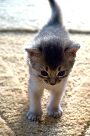あまり写真も動画も上手ではないのでいっそのこと見に来てもらいたい私です最近の赤ちゃんたち。赤ちゃんと呼ぶには大きくなったのでみんなのことを【ちびタン】と呼んでいます。ちびタンたち、上手に歩けるようになったんですよ。みんなダンボールの堰を上手に乗り越えられるようになりました!まずは一匹、ヨタヨタしながら出てきました。歩きながら頭を持ち上げるのはちびタンにとっては高度な技なの。『頭は重いでち』一匹が外に出るとそこに何かあると思うのか続いてお外に出てくる他の子たちでも4匹みんなが外に出ることはありません。なぜならば、一人ボーっとした子がいるから。笑女の子です。『箱の中でのんびりするの』もう一人の女の子は、一番やんちゃ。よく鳴き、よく暴れ、いつもお外に出てきます。弟妹の中で一番小さいのに。ちびちび・ちびタンです。(前回の日記でお外に出ていた子がその子です)さて、折角お外に出たので記念撮影でも(^ω^前足は立つけれど後ろはまだ少しヨロケちゃうのよね。(アラ、ちびちび・ちびタンはフレームアウトしていませんね。。)おまけの一枚ぷりぷりの肉球です!