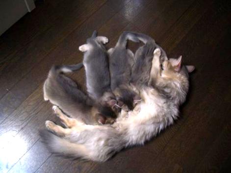 HPをこの休日に作ってみましたがあまりにもアレなので、もう少し直してから皆さんにお見せしてご意見を伺いたい初心者ブリーダーのような私です。おはようございます。ところで、いつもならこのくらいの時期にムクさんと男の子チームを入れ替えるので31日(火)に仔猫たちからムクちゃんを奪う予定だった私。でも、今回はなんだか可愛そうでね~。ムクが最後の子育てだと自分で分かっているはずは無いのだけれどいつも以上に熱心なの。more子煩悩、いやthe most子煩悩.こんな姿を目の当たりにしてチミは、仔猫の元から母猫を離せるかね?結局、このあと4匹集っちゃうし。「君ら、ご飯も食べてたよね?」って言いつつ見入るこの姿。まった可愛いのさぁ、この姿が( ̄m ̄*めっちゃ真剣に吸うのよ。そのあと、偽母・私のアンヨの間にすっぽり挟まって眠る眠り姫子(通称・ねむタン)足が太く見えるのは、角度のせいに違いなくてよ。◇◆◇◆◇◆◇◆◇◆◇◆◇◆◇◆◇◆◇◆◇◆◇◆◇◆◇◆◇◆◇◆◇◆◇◆◇◆◇眠り姫子は、ねむタンでしょ。白雪姫雄は、姫タンとか姫雄君でしょ。チビチビちびタンは、ちびタンなのね。で、ひときわ大きい子は、、、、とっても呼びにくいので、ここ数日の間にヒロシと呼ばれるようになりました。違和感無いのは、何で?