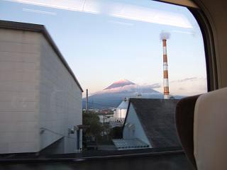 月曜日、華子ちゃんを検査のために動物病院へ連れて行き、帰ってきてからのこと。いつものように、納戸・寝室へ華子ちゃんを戻し自分のお昼ご飯を作っていたら何だかいつもと違った空気を背中に感じ振り向いたら““( ̄ロ ̄;そこに襖を自分で開けて出てきた華子ちゃんがいました。(ムクちゃんは、逃げて隠れていました)その後、その日から襖にはガムテープが張られ自分達が出入りする度に剥がしたり貼ったりの繰り返し。この状態で隔離し続けるのは無理だなーと判断しまだやり残している検査項目は地元・浜松ですることに決め移動日の火曜日に華子ちゃんをこちらへ連れてきました。私がいつも乗っているのは午後ティータイムの新幹線・こだま。華子ちゃんがいても普段通り、車内で軽くご飯を食べてすぐに仕事に行けるように準備します。小田原~熱海あたりでご飯を食べ終わると、次はDS.DSで英単語を最低でも100個くらい確認。普段から見ておかないと忘れちゃうし。それから、同じソフトで小テストなどをします。学研DS 新TOEICテスト完全攻略パーフェクトとは言い難い学習ソフトです。でも、やらないよりはマシ。もしくは、物は使いようだと思ってこのソフトの中の情報を全て自分のものにするまでは使おうと思っています。やっつけ★やっつけ★やっつけ作業です。ある意味自分もやっつけられて、ぐったり疲れるのですが勉強も仕事のうちなので仕方がありません。そんなときに、前の席でナンプレをしていた初老のオジさまが座席から身を乗り出し、何か動いているのが視野に入ったのでふと画面から視線を同じ方向へ向けると、こんな風景でした。分かりますか?夕日に染まる富士山。慌てて撮ったのでズームにするのを忘れちゃったズームにしたらこんな感じ。富士市の製紙工場のたなびく煙にも負けない姿。その後、新富士駅に近付くと防音のための板で遮られ駅ホームからの眺めも良くなかったので再度新幹線が出るのを待っていたら…日が暮れて夕焼けに染まる富士山は終わっていました新幹線にもすっかり慣れて華子ちゃんは寝ているしまたもや学習タイムに入り、掛川駅に付く頃にはこんな感じの美しい山の稜線。気分転換にパシャリと撮ってみました。でもこれ以降は良い風景が撮れません。だって、暗すぎてガラス窓に自分の姿が写りこんでしまうんだもの。え?車内で写真ばかり撮っていて大丈夫かって?大丈夫です。5時くらいの『こだま』は、まだサラリーマンも乗ってこないしガラ空きだから。これの一本後だと、静岡あたりから混むかな?それにしても、いつも同じことを思うんだけど…各駅停車の『こだま』に特急料金を払う馬鹿馬鹿しさと言ったら…。小田原・三島・新富士・静岡・掛川~と熱海を除くあらゆる駅でヒカリやノゾミの通過待ちをする『こだま』。平気で5分停車とかすんのよね。各駅での待ち時間のトータルは、30分に近いぞ (苦笑そんなこんなで新浜松に着き、混み合う時間帯のローカル線に乗る。混み合う時間帯なので、いつもよりも車両数が多い。その数、なんと2倍の4両編成。それから何駅でしょうねー、20分くらい乗り駅に迎えに来てくれる母の車で自宅まで。華子ちゃんと来ている事を伝えていなかったので母は当然驚き「この子は???」と聞くわけです。「こっちゃんの赤ちゃんを産んでくれるんだよ」(私)「…」 (母)「…」 (私)「…こっちゃん、ホモなのに?」 (母)「…。…両方いけるかもしれない…じゃん…」 (私)「ホモだよ?」 (母)と、なんとも重い空気の会話を親子で交わした後私の部屋をザザッと華子ちゃん仕様にしてお仕事に出かけた私です。■帰宅後の疑惑の小粒■確かに…なんとも頼りない…。