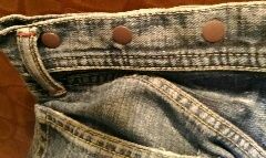 ウエスト部分に尖ったもので穴を開けてスナップボタンを嵌め込んで完成