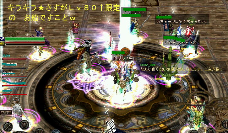 21:10 アリーナ第二世界へ。 ケータス聖堂にてCF練習開始 サファイアドロップ サファイアドロップ21:20 場所を神殿2階へと移す こちらでもラミュ相手に CF練習21:30 はじめてPKを受ける 1.○モジャ・・・・21:40 おなじく・・・ o(`ω´*)oプンスカプンスカ!! 思わずdukaに変身しちゃったけど・・・・ 神殿2階までいくのかなり面倒だし、あふぉらしいからやめた・・・ 一体なんなんだろうね。侍着てるとLvがわかんないよ。21:45 飽きた~ ひとりはさみしいねぇ で、ラピス第二世界へ戻りました。22:20 シューさんが神殿4階まで連れて行ってくれて、成長が落ちたことの あるルートを教えてくれました(o-_-o)ポッ ありがとう~がんばるね duka日記へとつづく。