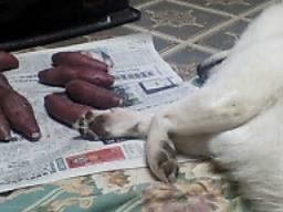 ちょっと最近、食べ物ネタが続いたのでここらで、面白い顔をアップ。ソファーの上から伏せをして下にいる私を眺めていたのを撮りました。本当は何か食べたかったらしい…いつもの事ながら…なんか、前川清に似てるように見えるのは私だけだろうか???(爆)どらちゃん、この そらの顔はいかがでしょう??(笑)あまりこんな顔の写真撮る人もいないと思うけど…おほほ。