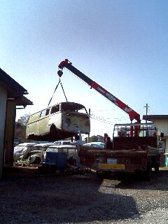 車を板金屋さんに出して来ました。バスの撤去中でした。
