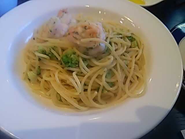 パスタ🍝(5種類から選択)1枚目海老とブロッコリー(私)2枚目牡蠣と水菜(母)