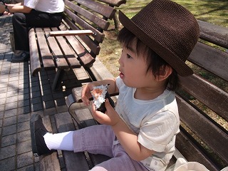 1歳9か月と16日目今日は28度ーーーーーーー夏が来たぁーー。。暑いーーーこんな日に家には居られないいや。。むしろ家にいた方が涼しいのかなたまには、、二人きりで公園でランチでも、、、、お買い物でもしちゃおうかなぁ。。とか、、いろいろ考え、、大通公園までわざわざーーー。。おにぎりだと、、自分で上手に食べれるようになったし、、楽ちん何度か、、「あっち行く」と言って、、歩き出そうとしたけど、、、「ダメよーー。。ご飯食べてからね。。」と言うと、、ちゃんと座っててくれて。。あらっ。。これなら、、二人で外食も、、出来るかしら、、ムリムリ~公園に着くまでは、、人混みに圧倒されてか、、駐車場から、、ずーーーと抱っこキツイ。。ご飯食べたら、、、慣れたのか、、、今度はガンガン歩きだし、、、走り出し、、汗だくーー噴水大好きー丁度、、、ライラック祭もやっていて、、、懐かしいーーー来た事ないかも、、ライラックもキレイねぇ。。。なんて、、言ってると、、おじさんと話しながら?ハトを観察鳩がとうもろこしを食べてると、、「ハト、、マンマーー」とデカイ声でお知らせもう、、暑くて、、ジリジリなので、、帰ろうと言っても動かないーーー地下で、、ジュース飲もうと誘うと、、「ジュース!」と言って、、大喜び結局、、生ジュースなくて、、豆乳だったけど、、そして、、時間も早いので、、靴でも買おうかと、、ベビザラスへところが、、、トーマスに夢中で、、これまた、、動かない結局、、靴じゃなくて、、トーマス買うハメに最近、、トーマス好きだから、、初のDVDも買ってみると、、、 すっごい食いつきーーーーーーーーーーー友達から貰った、、アンパンマンは5分も続かなかったけど、、トーマスは目つきが違うーーーー30分真剣に見てくれて、、これで、、外出から帰った時のぐずりも解消できるわっやっぱり、、アンパンマンは興味ないのね。。乗り物大好きそれにしても、、疲れたぁーーー。。やっぱり、、誰かサポートがいないと、、買い物はキツイなぁ。。。あっ今日、、ポリオの2回目も終了風邪も悪化しなくて、、良かったぁ。。これで、、後は、、ヒブだけだわーー。。「おうましゃん」と大はしゃぎ観光の馬車懐かしいーー