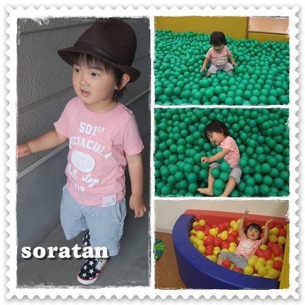 1歳11か月と12日目今日は、、産院で一緒だった友達と1年ぶりくらいに会う事に友達は働いていて、2人目妊娠中で、、しかも臨月なので、soratanと1週間違いの姫ちゃんは、、残念ながら、、保育園へ臨月で抱っこは厳しいしね、、仕方ないよね。。ママもとっても会うの楽しみだったんだけどなぁ。。子供はsoratanだけなので、、ゆっくり話す。。。って無理かな。。どうしよっ。。思いついたのが、、、この間行った、、ボーネルンド1日遊び放題にして、、たーーーっぷり、、1時間はブーブで遊んでてくれて、、その後は、、ボールプールで大はしゃぎママ達がおしゃべり中は、、スタッフのお姉さんと遊んでてくれて、、すっかり、、託児所気分さすがに、、2時間過ぎた頃には、、「ママ遊ぼっ」って言い出したけどねぇ。。こういう所来ると、、一人で自由にしてたり、、スタッフの人と仲良くなったり、、ママべったりじゃないから、、意外と助かるわぁ家以外で、、ゆっくり話せる所なんてなかなかないから、、ここ使えるかもーsoratanも楽しそうだしね友達とバイバイした後は、、二人でぶらぶらして、、ソフトクリーム食べて、、楽しいーキレイに食べれるようになったし、、お会計の時もウロウロしなくなったし、、買い物やイートインも楽しめるようになったなぁ。。近いうちに二人で外食やってみよーっと