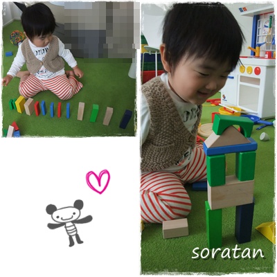 2歳2ヶ月と22日目今日も引きこもり~でも、、慣れれば意外と楽しいつきっきりで遊んでると、、たくさんの発見があるなぁおもちゃも、、色々交互に出して、、遊んでると、、久々の積み木忘れてたっ大喜びのsoratanいつの間にか、、複雑な物も作れるようになってたぁずーっと前にやった事のあるドミノをやり出したりそして、、衝動買いしてしまった、、キッチンで、、野菜を切って、、鍋に入れて、、手を洗ってなかったとぶつぶつ言いながら、、手を洗いちゃんと火加減まで見て、、塩や砂糖を入れて、、炒めて、、お皿に盛って「はいどうぞ、、ママ食べてください」「美味しい!美味しい!」と絶賛の後、、「初めてコーヒー飲むわ、、苦いけど美味しいね」と一服し、、真剣にお皿を洗ってるチビママだわっ面白い今日も一緒にランチ中に、、ママがお茶をこぼしてしまったら、、大笑して、、「ダメでしょ、、ちゃんと両手で持って、、前向いて、、こぼすからね!分かった?」と注意されてしまった(爆)まさに、、、、、ママのコピーね真顔で言ってくるから、、可愛くて、、面白いそして、、なかなかお昼寝してくれないので、、少しだけ、、お散歩へでも、、すごい風ありゃりゃ。。帰ろうもちろん大喜びのsoratanあまりの喜び具合で、、可哀想なので、、いつもの散歩道の「○△×までだよ。約束だからね」と言って、、行ってみると、、やっぱりもっと行きたがり、、「ダメよ。。さっき約束したでしょ。。」って言うと、、人差し指を出して、、ママの小指に絡めてきて、、「約束。。」って言って、、家に帰ったの指間違えてるけど、、たまに指切りげんまんしてたの覚えてたんだねーーもう、、本当に本当に可愛くて、、バカバカ~そして、、夕飯の時も、、いつも自分の席で待ち構えてて、、出されたらすぐ食べちゃうのに、、「ママと一緒に食べようよーー待っててーーー」って何気に言ってみたら、、何度も、、大好きな海老フライを口元まで持っていって考えて、、お皿に置いたりして、、ちゃんと我慢してるのーーーーーーかわい過ぎる初めて、、「ママ一緒に食べようねー」と言って、、待っててくれた。。毎日、、毎日、、成長してるなぁーー愛情を注いだ分だけ、、ちゃんと返ってくる、、その倍以上かな集中力も増えてきたし、、インフルの引きこもり良い事多し!ママにとっては、、初心に戻れた時間かも、、いつも、、寝かせて、、その間に、、色々やってって、、そんな事ばかり考えてたかも今のこの、、一番可愛い時期を大切にしなくちゃ