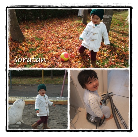 2歳2ヶ月と12日目今日は、、英会話教室の体験へ行ってきたぁーー最近、、右脳ブーム、、早期教育、、等で、、、周りでも習い事を考え始める子が多く。。って、、思いっきり流行りに左右されている感はあるけど、、3歳までに、、成人の7割の脳が決まってしまう!という話は気になって。。特に英語の発音は3歳前と後では、、その後の英語の習得にも影響が大きいらしく、、しかも、、小学生から、、英語は必修でヒアリングだって話を聞いて、、これは、、やっておかねばって事で、、、取りあえず、、英会話教室に体験をしに。。。教室に入るなり、、英語で挨拶soratanにも担当の先生(カナダ人)が、、英語でペラペラ挨拶して、、慣れさせようと遊んだりしてくれてるんだけど、、soratanは逃げ腰ついでに、、英語が苦手なパパとママも愛想笑いパパも一緒に行くというので、、来たけど、、親は1名しか入れず、、ママと一緒に教室へすると、、テンションの高い先生が、、挨拶したり、、天気の話をしてるっぽく、、ママさん達も笑ってるsoratanよりも、、ママがついていけないわーーーーー一つの教室に4人で入るらしいけど、、今日は全員女の子で、、0歳からやってる子達で、、ママさん達も相当慣れてる感じヒエー親も日本語禁止だから、、後半みんな飽き出してぐずった時は、、無言の笑顔であやしたりしてて、、不思議な光景でも、、何をして遊ぶにも英語で、、絵本も英語、、これなら自然に覚えそうだし、、ママも勉強になりそう実際に、、5歳の子で、、簡単な長分のヒアリングや発音もバッチリでびっくり車で20分くらいかかっちゃうから、、通うの大変そうだけど、、頑張るかなぁーー教室の帰りは、、大好きな滝野の公園へ紅葉がとっても綺麗だったぁーー落ち葉の上を走りまわって、、楽しそう「休憩しよっ。。よっこらしょ。。」だって(笑)習い事や幼稚園が始まっちゃうと、、一緒にいる時間も少なくなっていくんだねー。。ずーーっと一緒にいたいな。。怖いっ