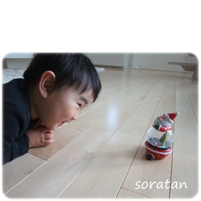 2歳3ヶ月と24日目今日は、、昨日の疲れか、、3人で朝寝坊~久々にこんなにダラついてるわぁーーー。。ママとパパが掃除中。。soratanは、、初めて見る、、サンタのスノードームに夢中雪を降らせてあげると、、「キレイだねー」って拍手して、、目がキラキラしてるこういう姿を見ると、、自然と微笑んじゃう純粋で可愛いなぁーー最近、、サンタの絵本を読んでるから、、「サンタさん来るの?」って聞いてくるこういう質問されるのも、、ちょっと憧れてたんだよねーークククすると、、、やっとネットで注文してた、、クリスマスツリーが届いたーー手違いやら、、いろいろで10日くらい遅れたもんねーー待ってたわーーパパと一緒に組立て、、飾り付けもお手伝い出来あがって、、ライトを付けると、、パチパチこんなにも、、喜びを分かち合えるようになるなんて、、ホント楽しい
