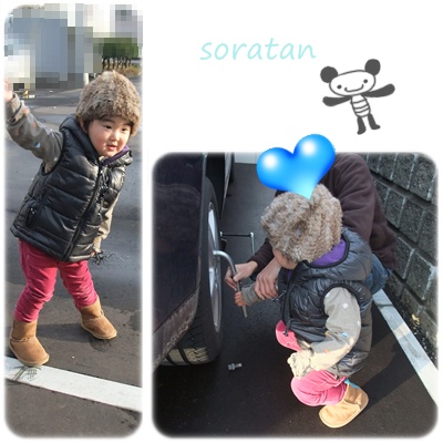 2歳3ヶ月と10日目今日は、、変なお天気雨が降ったり止んだり。。引きこもり決定だねって事で、、久々に3人でお家で遊んでたら、、急に晴れてきて、、パパが、、やっぱり、、タイヤ交換する!!って言いだし、、soratanは、、超ーーーハイテンションしかも、、一緒にやらせてもらったりしたから、、大喜びこういう姿を見ると、、パパの役目だわーーなんて思う何回も、、「パパお仕事行かない?」って確認してて、、可愛かった。。パパ忙しいもんねーー。。パパはメロメロだわっそして、、珍しく、、喧嘩もしなかった、、パパとママ(笑)「パパもママも怒らないねー」ってニコニコしてたちょっと、、ドキッとした。。いつも、、ケンカしちゃうもんね。。ゴメン。。。やっぱり、、3人で仲良くしてると、、soratanも大喜び当たり前の事なんだけど、、(苦笑)ママもパパも大人にならなきゃね。。