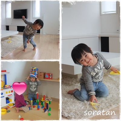2歳3ヶ月と8日目今日は、、午後から、、3ヶ月点検の補修にいろんな業者の方が来るので、、朝から大掃除soratanは、、くっついて歩きながら、、ミスチルを歌って上機嫌ママが掃除をし出すと止まらない事が分かってるから(笑)2時間くらいとかでも、、待っててくれるから、、助かるぅそれでも、、邪魔して、、ママがプリプリしてると、、「ママ怒ってるわぁーー。。怖いわー。。」とかってぶつぶつ言って、、遠くで遊んだり、、怒ってる時のママへの対処が分かってきたのね(笑)そして、、急いでお昼食べて!って思ってたら、、またまた、、ダラダラ~。。「ママ~。。ちゃんと噛んでるよー」とかって顔を近づけてきたり、、甘えモード全開あらら、、昨日から、、続いてるのかしら、、トホホ。。。でも、、急いでる時は、、困るわぁーーー何とか食べさせ、、パパが帰って来てくれて、、交代業者の方はパパに任せて、、ママ友のお家へGOこの間飲みに行ったママ友に、、誘われて、、他のママさんも合流ドキドキ久々の、、、男の子も居た!!一学年下なんだけど、、、やっぱり、、車好きで、、一緒に遊べてsoratanは楽しそうママ達も、、いろんな突っ込んだ話も出来て、、楽しかったぁ。。車で行く距離だけど、、3分くらいだし、、近いのって楽ちんでいいわぁーーなかなか気の合いそうな感じなので、、また集まろうって事にsoratanは帰るのに、、車に乗せたとたん「眠いのー」と悲しい顔お昼寝なしだったもんねーーー。。即効寝ちゃったぁーーー。。遅くなっちゃったもんねー。。ゴメンヨー。。