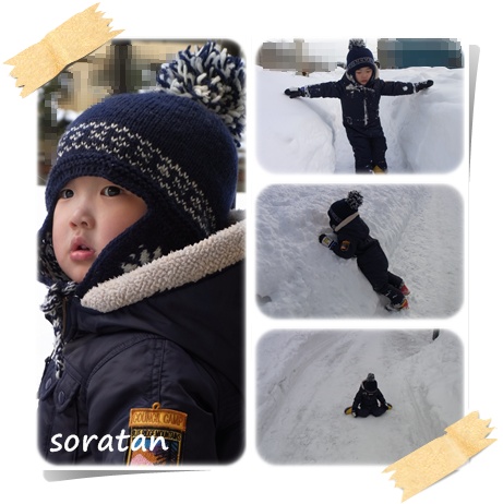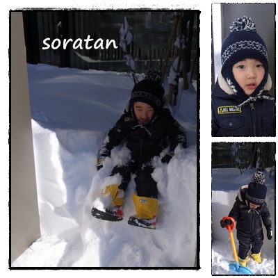 2歳5カ月と12日目今朝、、カーテンを開けると、、、ドッカーンsoratanが埋まりそうな程、、雪が積もってた50cmくらい??もっと??一晩で積もってて、、びっくり中庭も大変な事になってるので、、急いで、、全員で雪かきだーばぁちゃんに編んでもらった帽子。。何故か嫌がってたのに、、今日は被ってくれたイヤイヤ、、、全然進みませんけども。。。一応、、スコップで雪かきできるようになっててびっくりしたけど(笑)少しづつ運んでくれて、、「すごいなーこれ、、重いなー」「はぁ。。疲れるなー」ってぶつぶつ言ってる(笑)実家もヒドイ事になってるようなので、、みんなでヘルプママさんダンプ?懐かしいーー。。使った事なかったけど、、大雪の時はスコップより便利だー。。って、、soratanに乗られて、、使えないけどみんなに怒られ、、最終的には、、絶対に怒らない、、じぃじの所へ。。「ママ、、パパ、、ばいばーい、、あっち行ってよー」って大声で怒鳴りまくってたけど無視。。。(笑)昼過ぎにやっと終わり。。。。もう、、動けない。。パパもママも腰が。。。。腕が。。。一人元気もりもりのsoratan。。(汗)あー。。北国の一軒家って、、雪かきがキツイのよね(涙)