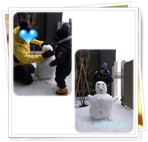2歳5カ月と26日目最近は、、ママ友のお家に遊びに行ったり、、昨日は、、ママが友達と飲みに行ったりと、、バタバタと忙しいーーー生活に追われないようにと、、年始に決めたばかりなのに。。。(汗)なかなか家でまったり出来ないそんな今日は、、飲み過ぎで、、具合悪いママを気遣ってくれて、、パパは午前中、、soratanとみっちり外遊びに出てくれた感謝。。。今年初の、、パパ作、、雪だるま。。てか、、人間(笑)soratanも「人形みたいだね」とか言ってたぁ。。ハハ。。soratanは「めんめちゃん」と言って、、今朝もすぐ、、窓から確認して、、「おはよう」をしてた雪の積もった公園で、、埋まりながら転げまわって、、この大きな雪だるまをソリで運んできたらしく、、、、パパだと、、ダイナミックな遊びが多いから、、楽しそうそんな二人の姿をソファーで寝っ転がりながら見てるママ。。幸せだワー。。そして、、だんだん気分も良くなってきたので、、映画を見てから、、すっかりハマった、、マイケルミーハー。。アルバムも毎日のように聞き(笑)。。DVDも毎日鑑賞(笑)。。マイケルの曲も覚えてきたsoratan(笑)当たり前か~。。今までは、、目が悪くなったらとか、、大音量ってと思って見せてなかったホームシアターを初体験「ウオーーーーなんか下りてきたーーー」って叫んで、、「うわーーーっマイケルーー」もう、、最初から、、狂ったように踊りまくり、、、ムーンウォーク風も披露してくれ、、「フォーフォー」言いまくり(爆)汗びっしょりなので、、30分程で終了すっごい怒ってたけど、、、これで、、ダンサーだの、、バンドだの言い出したらどうしよう。。童謡よりも、、大喜びだし。。。家族で、、楽しめるのは、、いいのかな。。ハハ。。いや、、毎日はやめておこう。。(汗)。。