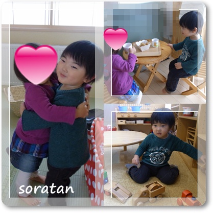2歳5カ月と17日目今日は、、保育園で知り合った、、お友達のお家で集まりsoratanは、、Y君の家に行くんだよと言うと、、大喜び早く行こうとせかされ。。到着すると、、「こんにちはー」と言って、、入り、、おもちゃがたくさんの部屋に大興奮男の子のお家だから、、車系もたくさーーん。。乗り回したり、、トミカを一緒に並べたり女の子もいたけど、、遊び方が全然違うーー女の子は、、なんとなく車動かしてるって感じだけど、、男の子組は、、集中してて、、この車はここが開くんだとか、、これをこっちに並べるとか、、真剣珍しく、、お菓子もそこそこだったし。。。キャー。。よっぽど楽しかったのか、、「帰るよー」と言うと、、「帰りたくない」って、、、人の家に行って、、初めて言ったかも本当に楽しかったんだなぁー。。やっぱり男の子のお友達がたくさん欲しいなー。。最後に、、今ブームのマイケルジャクソンを踊って、、歌って、「フーー」とか言って、、大爆笑をとってたまた遊んでもらおうねーー。。