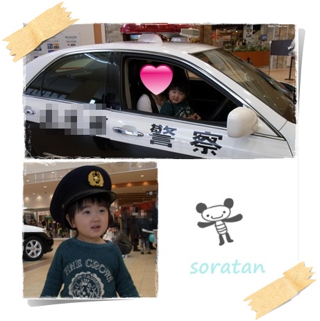 2歳5カ月と5日目今日は、、イベント盛りだくさんまずは、、SCで本物のパトカーに乗れるとの情報をゲットし本物だぁーーと親の方が大興奮(笑)soratanは一人で乗るのは嫌がったので、、ママと乗車すると、、若いお兄さんが、、自分の帽子を貸してくれて、、パチリしばらくすると、、パパが乗りたいと言い出し(笑)また乗車ガラガラで良かったぁーー。。ハハあっさりと終わってしまったので、、ボーネルンドへ遊びに行く事に久々に来たぁー。。今日は、、パパもいるし、、何でもいけるんじゃない?なんて思ってたら、、ふわふわはずみながら走る遊具に固まる。。。歩き始めの頃は、、キャーキャー言ってたのに、、いつの日からか怖がるようになってしまい。。みんな大喜びで、、怖がってるのなんてsoratanだけよーーなんとか、、パパが誘ったり、、手をつないでも、、半泣き他の、、飛び跳ねるのもダメで、、くるくる回るのはパパと一緒じゃなきゃダメだったけど、、笑ってたらから、、一歩前進かな結局、、ボールプールと車遊びが一番楽しいようで、、、パパは、、ちょっとショックだったらしく。。男の子なのに、、こんなにビビリはまずい通って訓練するとか、、わけわからん事言ってたぁ。。ハハ。。そして、、ランチを食べ。。トミカ博へ年に2回来てるみたいだけど、、去年行った時に、、たまたま夕方に行って16時頃から急に空き出して、、しかも16時半までなのに17時まで延長で、、その延長30分、、アトラクション待ち時間なしのガラガラだったなぁーと思い出しわざわざ、、大渋滞の駐車場の方に並び、、soratanを昼寝させ、、16時に入ると、、昼間は1時間待ちのアトラクションも15分待ち、、しかも、、やっぱり17時まで延長で、、アトラクション待ち時間なし、、連休中でも、、満喫できたのでした。。寝起きだったから、、かなり機嫌悪いしかも、、運転体験で、、風が出てくるの怖がって、、泣きだすsoratanどんだけ、、ビビリよーーーー。。初めての、、一人での乗り物かなり固まって、、両手をピーンと伸ばして、、ガッチリ捕まってる感じだったけど、、3回目には、、ニコニコで手も振る余裕もなんだか、、子供の緊張してる姿見ると、、こっちまで緊張しちゃって2周しかしない、、ただの電車なんだけどねーー。。ホホ。。