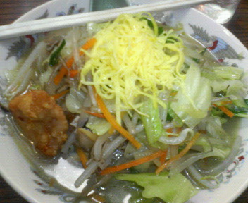 こんにちわ、そらです。職場で起こっていたトラブルがやっと1つ片付き、ほっとしています。ブログはサボっていましたが、毎日仕事に行き、ランチはしっかりw食べているのでランチ写真がたまっていましたのでご紹介します。【有楽町 交通会館B1F 桃園 の ちゃんぽん 800円也】ネット上では色々なブログにのっています。気になっていたので、行ってみました。っていうか、凄く量が多くて完食は難しい?具の組み合わせが意味不明でしたが、まずくはない。。皆さんが書いていたとおり、冷えた唐揚げが1個のってましたwwwあとはもやし・キャベツ・にんじん・さつま揚げ等々の具が山盛りです。そして麺が極太!!!しまった~~~細麺好きなのにぃ~と思ったけどちゃんぽんって太麺が普通ですよね。。薄味なので、大量にコショウをかけて、いただきました。ごちそうさま。
